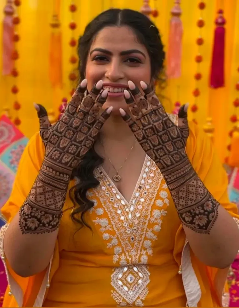 The best part of my job is seeing the joy my mehandi brings. This collection captures the vibrant atmosphere of sangeets, weddings, and parties, featuring brides, grooms, families, and guests all celebrating together. We handle events of all sizes to make sure everyone feels included.