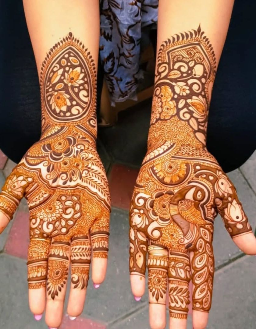 Explore our collection of classic bridal styles, including detailed Marwadi, Rajasthani, and Arabic patterns. These designs feature beautiful motifs like peacocks, elephants, lotuses, and mandalas for a timeless look.