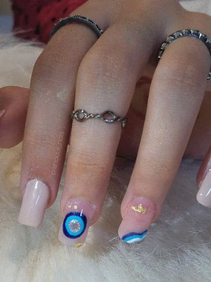 I do custom nail art and extensions with trending designs, strong finish, and strict hygiene using pro products.