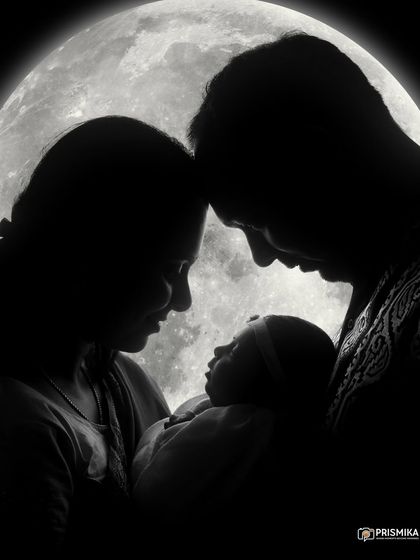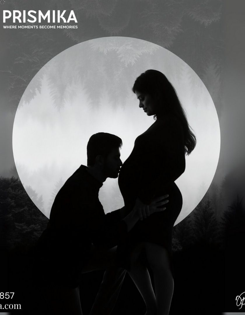 For those who want something bold and different, we create stunning silhouette portraits. Using dramatic lighting against a full moon backdrop, we capture the intimate bond and beautiful outlines of your journey, from couple to family.