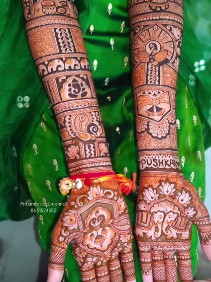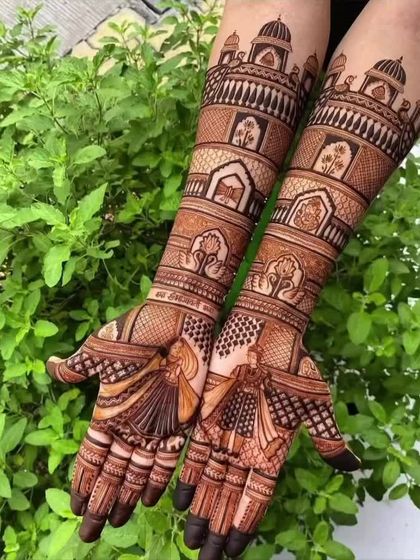 This is a handpicked selection of my best work. It shows the variety and detail I bring to every bride, from telling your unique love story with custom portraits to creating timeless traditional designs. Each one is a testament to my promise: 100% natural henna and a guaranteed deep, rich color.