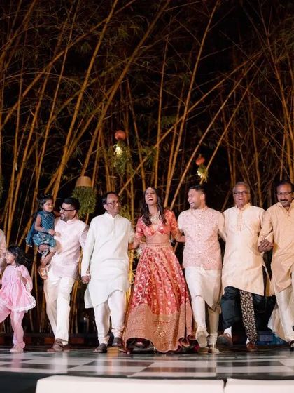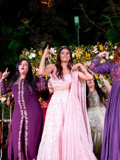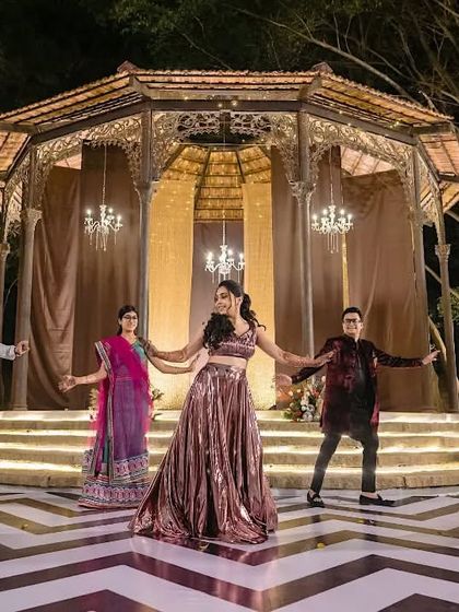 I choreograph wedding and sangeet dances for all ages and skill levels, making sure everyone can join in, learn easily, and enjoy performing together, with custom routines and props if needed.