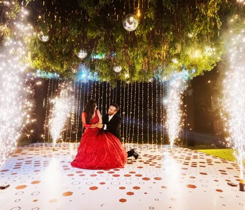 I help you make an unforgettable entrance and add that 'wow' factor to your performance. We use props like dramatic LED wings, smoke effects, and cold fire pyrotechnics to create a truly filmy experience.