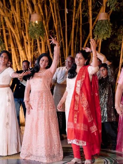 This is where the real party is! I choreograph high-energy group numbers for the bridesmaid squad, the groom's friends, and full family acts that even your shy chacha can enjoy. It's all about easy steps and maximum dhamaka.
