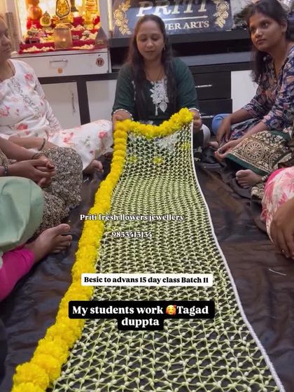 My course goes beyond personal jewellery. I teach you how to create large, impressive statement pieces like intricate floral dupattas (shela), full-length wedding garlands, and decorative floral umbrellas perfect for grand entrances.