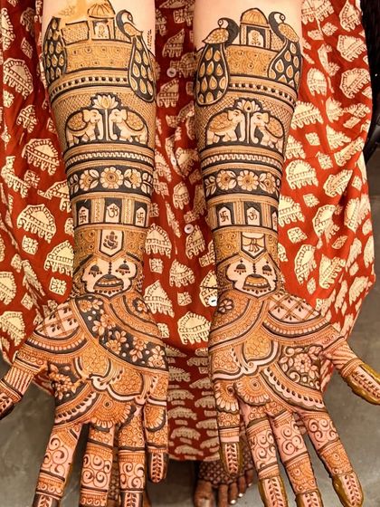 Intricate Bridal Designs - Detailed bridal mehndi with dolis, barats, portraits, even names and dates woven in.