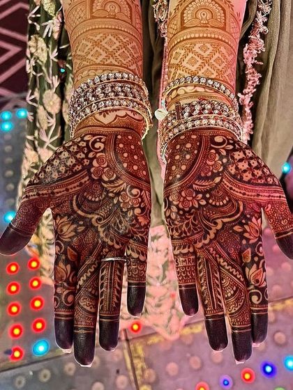 I create custom bridal mehndi with your story, using fresh homemade paste for deep color and detailed designs, and I also do mehndi for your family and friends.