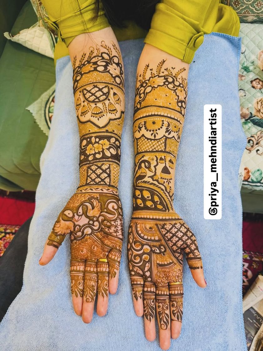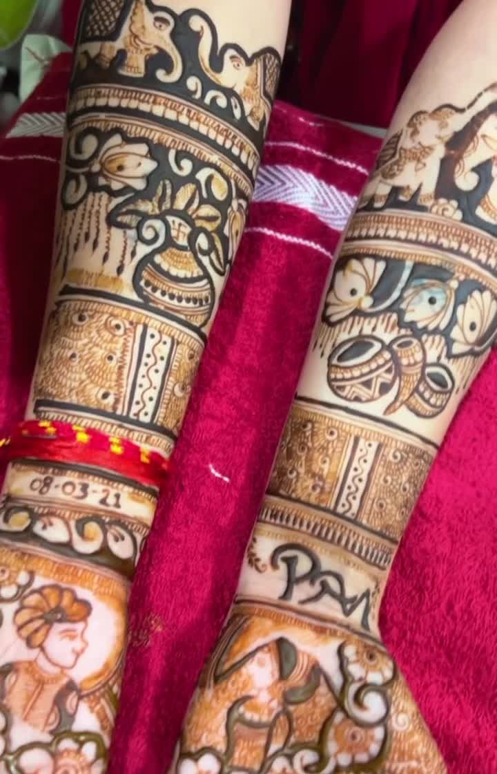 I love weaving personal elements into your bridal mehndi to make it uniquely yours. We can include anything from portraits of you and your partner, your initials and wedding date, to meaningful symbols like a doli, kalash, or your favorite motifs.