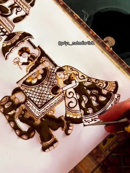 I am constantly practicing and creating new designs to perfect my art. Here you can see some of my design tutorials and practice work, from intricate figures like brides and Ganesha to traditional motifs like peacocks and elephants.