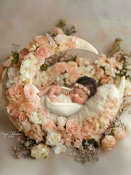 - In my Gurugram studio, I offer posed newborn studio portraits with tons of props and backdrops. Think magazine-style, artsy shots where your baby’s the star.