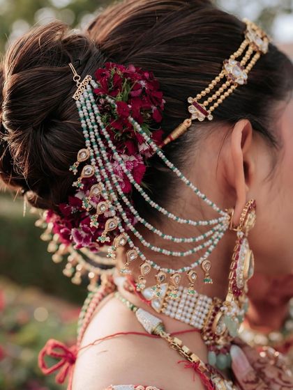 A bridal look is more than just makeup; it's about the complete picture. I work closely with talented hairstylists to create stunning updos, romantic waves, and traditional braids. This gallery highlights the beautiful details, from fresh floral adornments and intricate hair accessories to the perfect draping of a dupatta.