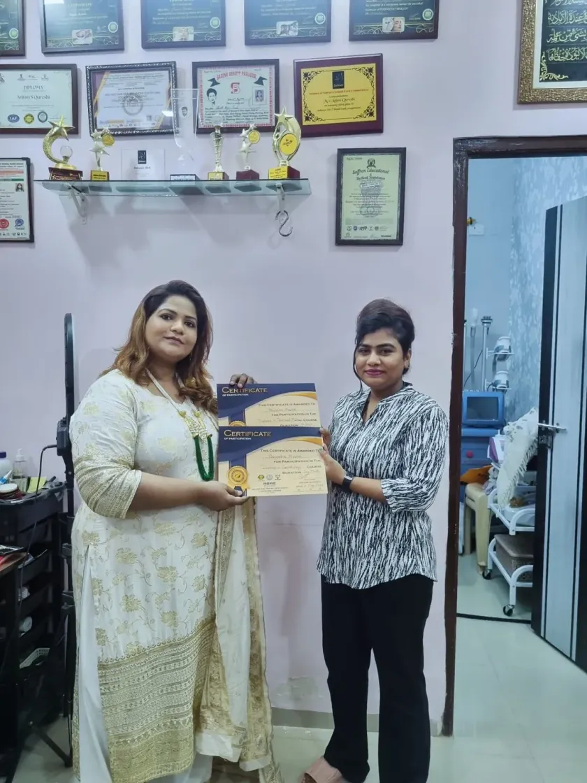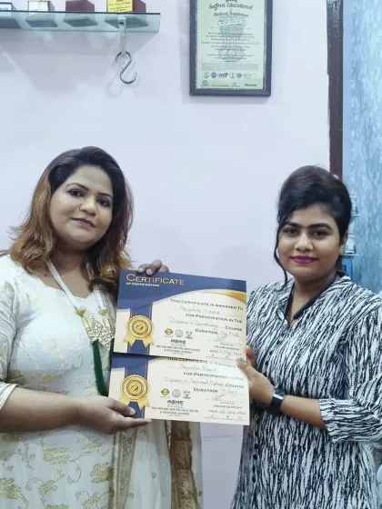 A complete artist knows more than just makeup. We also teach crucial skills like professional saree draping for different regional styles, including Navari and Bengali, as well as the fundamentals of groom makeup.