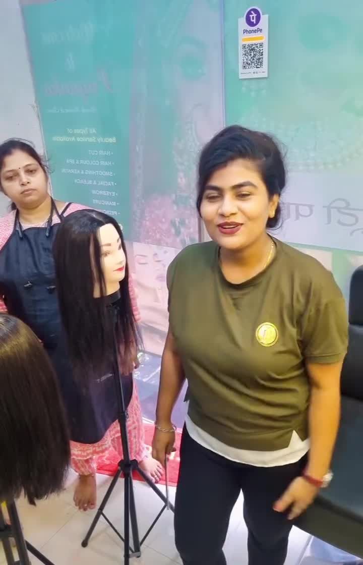 I believe in learning by doing. This is a look inside my classroom where I give personal attention to every student, guiding them through hands-on practice for makeup, haircutting, and other techniques.