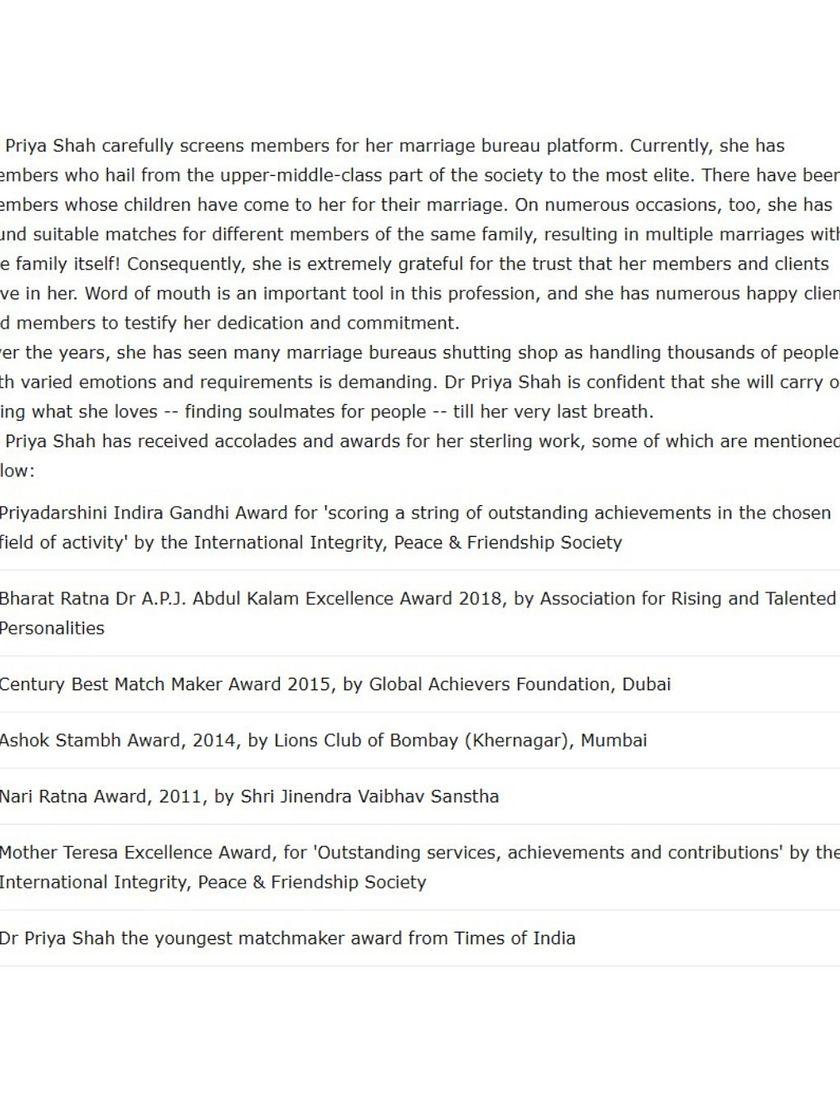 I am humbled by the recognition I have received over the years for my work in matchmaking. These awards are a testament to the trust my clients place in me and the 12,000+ successful unions I have been privileged to create.