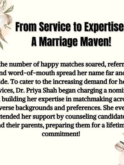 I believe in combining the wisdom of tradition with the practical needs of today. This is not about algorithms; it is about creating 'Arranged Love Marriages' based on deep compatibility, shared values, and genuine emotional connection. My goal is to help you find a partner, not just a profile.