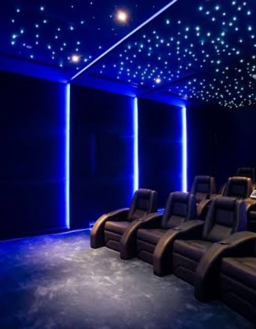We design and install multi-layered lighting systems to create the perfect movie-watching atmosphere. This includes everything from dramatic LED strip installations and fiber optic starry night ceilings to subtle accent lights, all controllable from your phone.