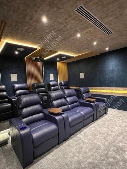 We provide a range of seating solutions tailored to your space and preference. Our offerings include motorized leather recliners for an authentic cinema feel and custom multi-tiered lounge sofas for casual viewing parties.