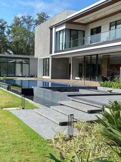 Signature Touches - Love grand entrances, luxury swimming pool design, Indian classical courtyard, and cozy sunken seating with fireplaces.