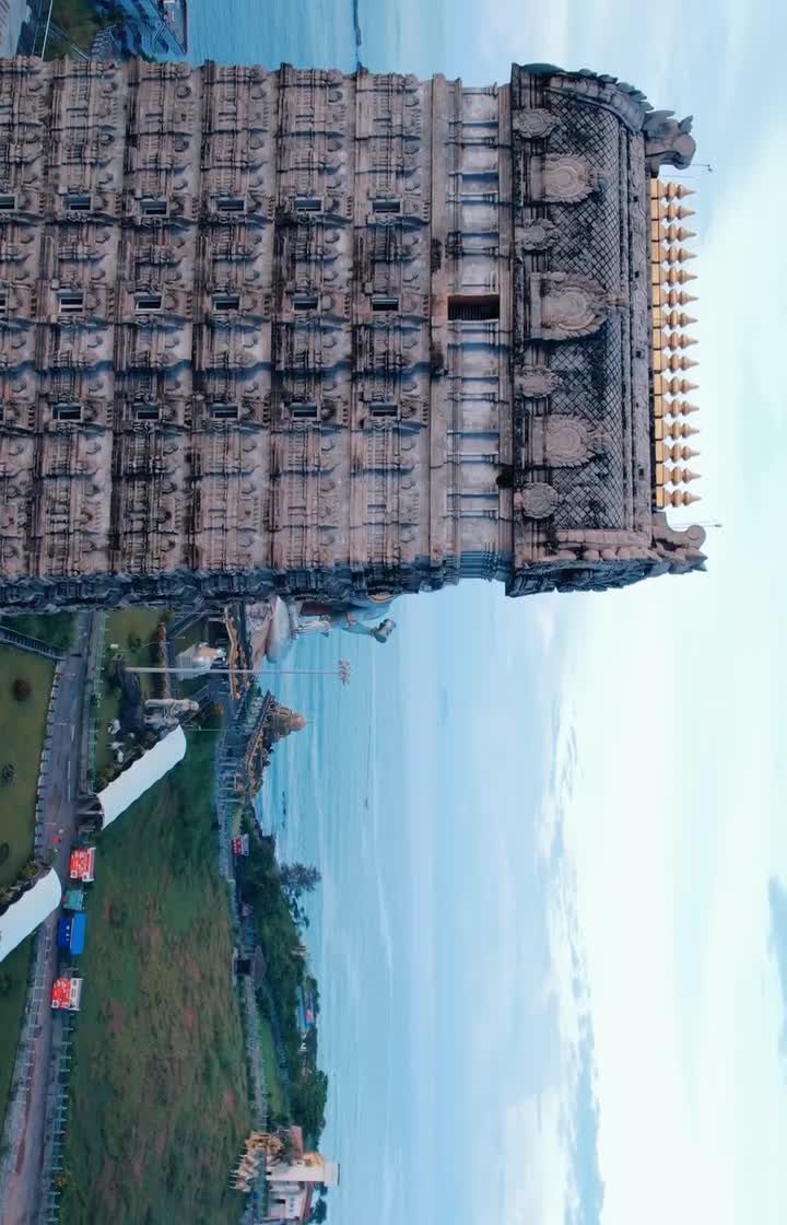 I use my drone to capture the divine architecture and spiritual presence of Karnataka's most revered temples and palaces. These aerial perspectives reveal the grandeur of sites like Murdeshwara, Melkote, and Dharmastala, often during the magical light of dawn or through atmospheric fog.