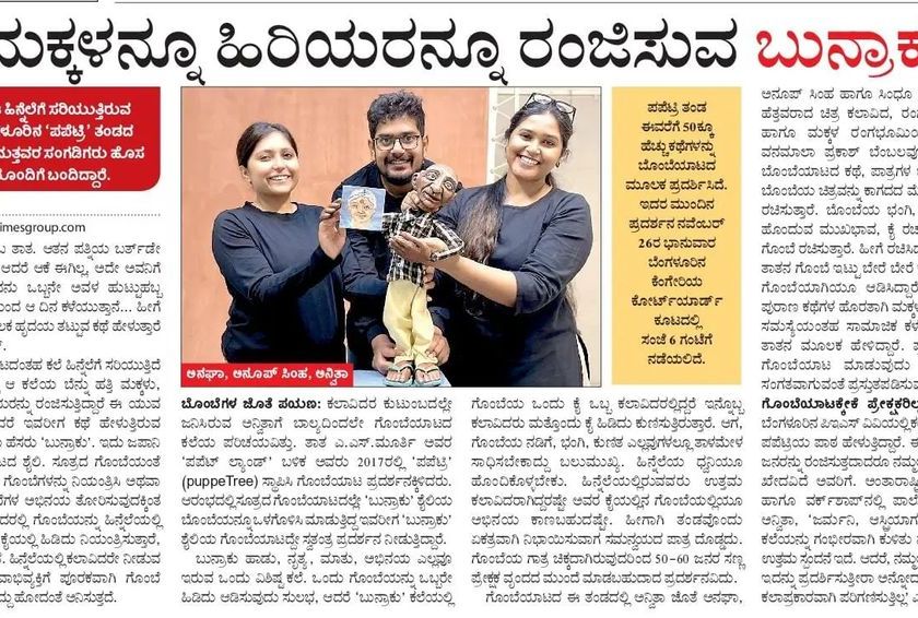 We are humbled and proud of the journey our puppets have taken us on. From being featured in local newspapers like the Deccan Chronicle and Vijaya Karnataka to representing India at international puppetry festivals in Europe, it has been an amazing ride. This recognition fuels our passion to keep sharing our stories.