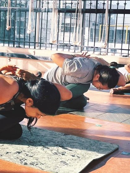 All About Connection - Props, walls, sometimes each other—yoga here is about finding your sweet spot, not perfection.
