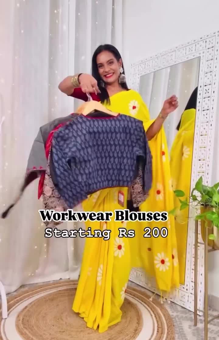 Look sharp and stylish at the office with my handpicked collection of workwear sarees. I focus on comfortable, home washable fabrics like crepe and satin with elegant prints that are perfect for a professional setting.