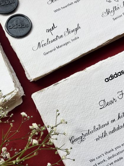 I provide elegant, handwritten calligraphy for corporate and personal stationery. From appreciation notes on handmade paper to addressing event certificates, this service adds a classic, human touch that digital communication cannot replicate.