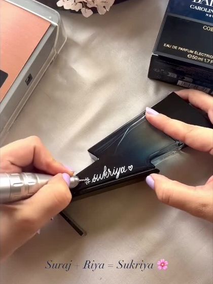 I turn your favorite perfumes, lipsticks, and cosmetics into timeless keepsakes. I can engrave names, special dates, monograms, or short messages directly onto glass bottles and beauty products, making them the perfect personal gift.
