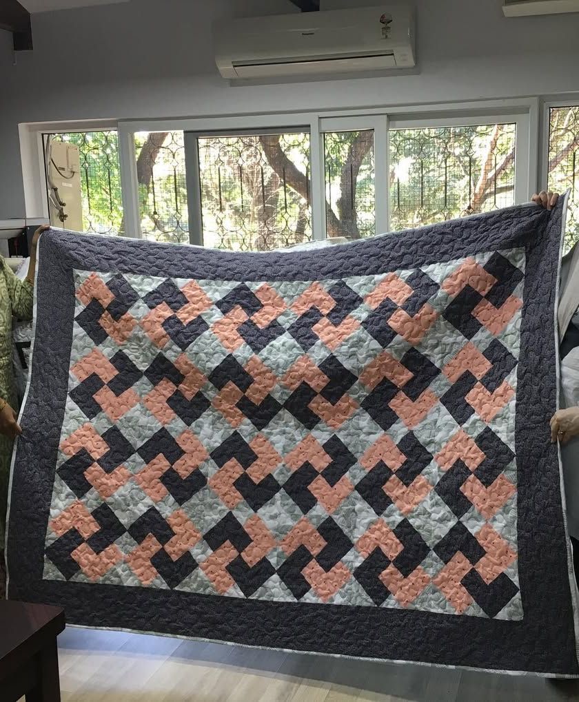 We love working with our talented clients and students. Here are a few of them proudly showing off the beautiful quilts they have either made in our workshops or brought to us for our professional longarm quilting services.