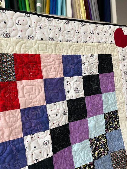 We transform your cherished fabrics like sarees and baby clothes into beautiful, personalized memory quilts using professional longarm quilting techniques. Each quilt is meticulously crafted with detailed stitching patterns including ruler work, spirals, and stippling to enhance the sentimental value of your materials.