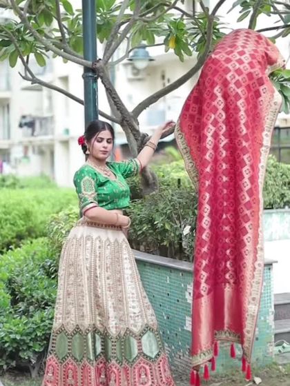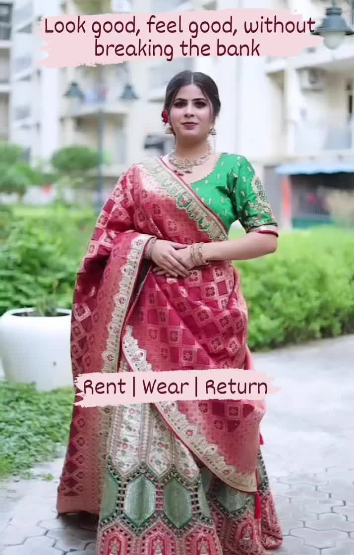 Find the perfect showstopper for any wedding function, from sangeet to reception. My collection includes royal lehengas with heavy jadau and gota patti work, as well as multi-purpose lehengas in unique color combinations, complete with matching jewellery available for rent.
