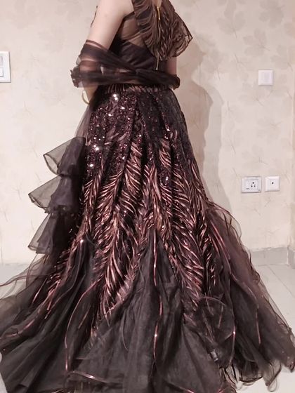 For those who love a modern edge, I offer designer lehengas with unique cuts and embellishments. This collection features trendy elements like poncho tops, frilled dupattas, and bold sequin work for a fashion-forward party look.