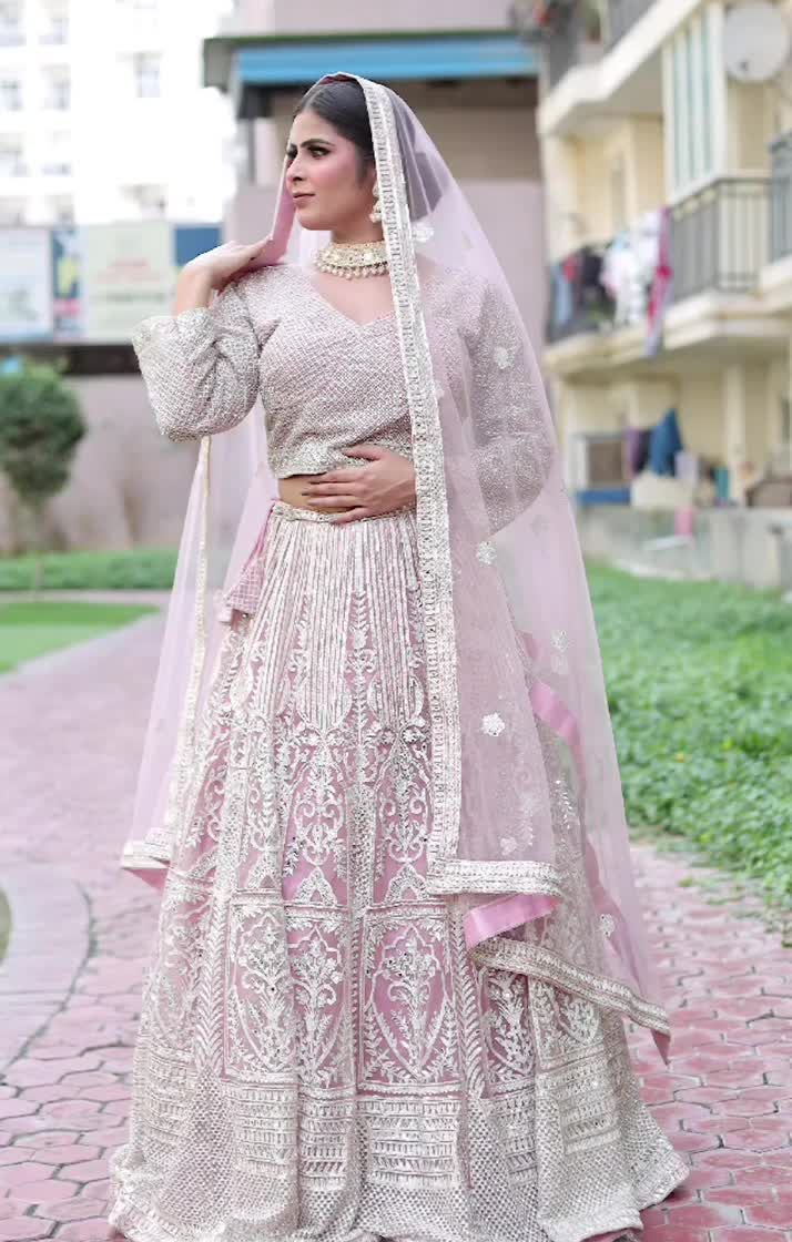 My collection includes a variety of beautiful lehengas that are perfect for any wedding event, from a sangeet or reception to a pre-wedding shoot. This selection showcases different styles, including a modern lehenga with delicate gota patti work and another with a unique pink and grey ombre design.