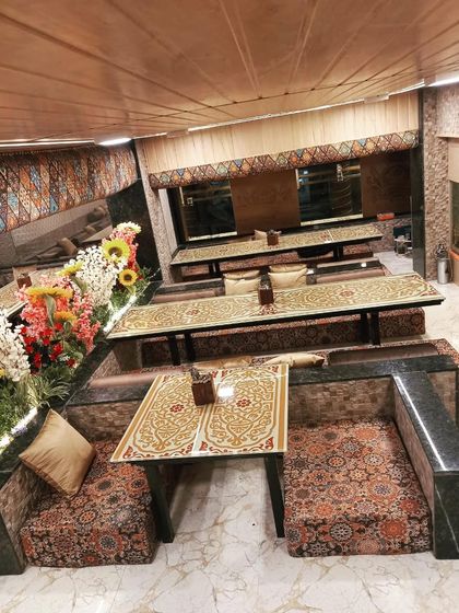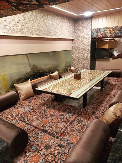 Traditional Dastarkhwan Seating - Zameen pe baith ke, purane zamane ka feel. Table bhi mil jayegi, jaisa aapko theek lage.