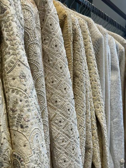 I design ethnic wear for men that is both regal and contemporary. From intricately embroidered sherwanis and bandhgalas for grooms to elegant kurtas and jackets for wedding guests, each piece is crafted to make a statement. I ensure a perfect fit for a sharp and sophisticated look.