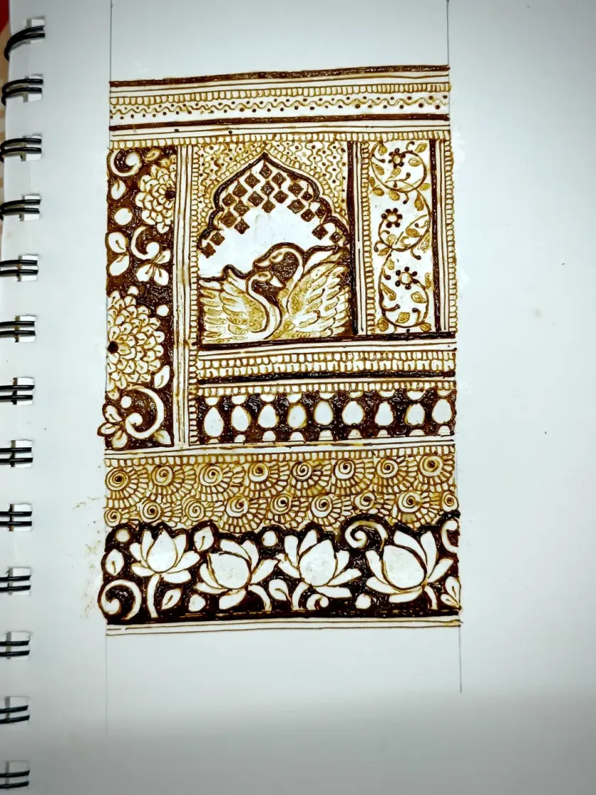 Every unique mehendi design begins as an idea in my sketchbook. I spend hours practicing and perfecting every element, from intricate bridal motifs to clean, sharp borders, ensuring each design is flawless before it's applied to your skin.