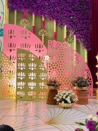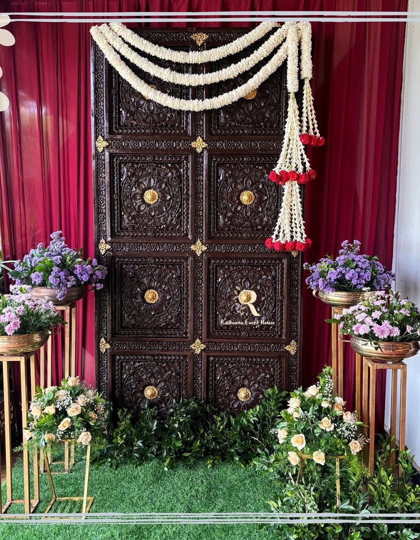 I honor our culture by incorporating timeless traditions into my decor. My designs feature classic elements like intricate floral rangolis, jasmine and marigold garlands, brass and bronze urlis, and props with detailed jaali work. I often use auspicious symbols like banana leaves, deity cutouts, and temple-inspired structures to create an authentic and sacred ambiance.