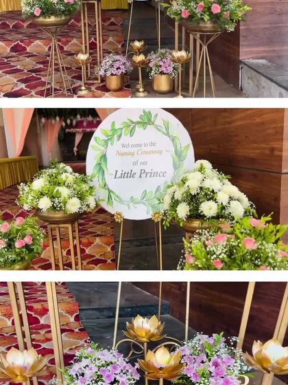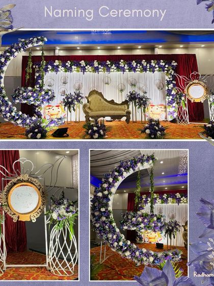 I specialize in creating magical settings for your baby’s first big day. My designs range from traditional setups with ornate silver cradles and divine themes like Yashoda and Krishna, to modern concepts with floral moons and unique name reveals. The cradle is always the centerpiece, beautifully decorated to welcome your little one.