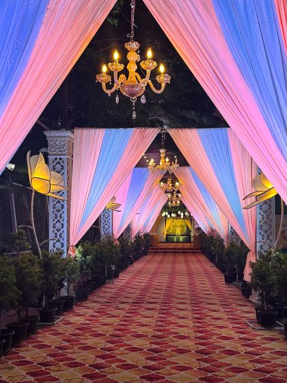 - Weddings: From floral mandap decoration with ceiling flowers and hanging garlands to traditional mandaps with Pichwai art or peacock details, we work with both classic and modern ideas.