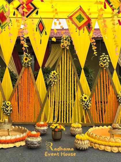 Namaskara! We’re Radhama Event House. For us, it’s not just some stage setup, it’s pure passion. Starts with a scribble, ends with everyone dancing and laughing. Our team loves the madness—cutting, sticking, climbing ladders, all that jazz. Bangalore gives us so much culture to play with, from grand temple-style mandapas to cute Little Krishna themes. When faces light up, we feel sakkath khushi (super happy). We create, you celebrate. Simple.