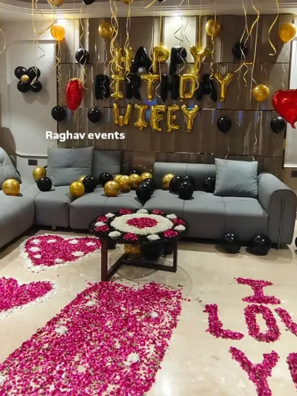 Surprise your loved one with a room filled with balloons, fairy lights, and rose petals. I create beautiful and romantic decorations for birthdays, anniversaries, and proposals, including floor arrangements and bed decorations.