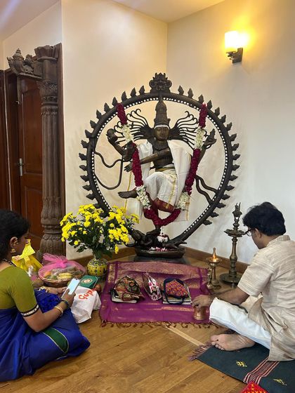 Family is everything for us at Kalangan. Amma and Appa, especially my mother Smt. Jamuna Krishnan, shaped our world - her sarees and her dance creations are still with me. My husband and two boys, Aditya and Anant, keep the house full of cricket, music, and laughter. Traditions like Vishu’s kai-neetam and Navratri’s golu bommais run deep here. All this love and history – it’s what you’ll feel in our dance.