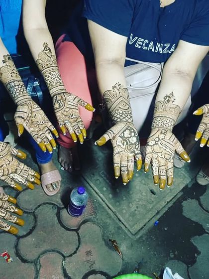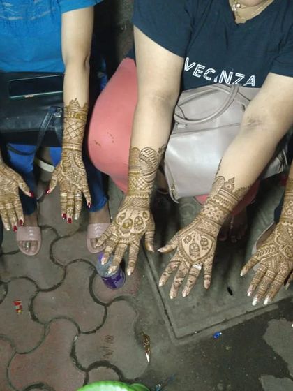 I bring custom mehendi designs for any event or festival, use my own natural henna for dark colour, and offer 24/7 home service in Mumbai, Pune, and for destination functions.