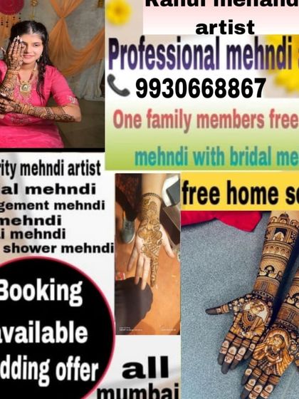 Radhe Radhe! Main Rahul, Andheri, Mumbai se. Mehendi mere liye sirf kaam nahi – yeh meri kala hai, mera junoon. Dulhan ke haath pe mehendi lagata hoon toh unki muskurahat hi mera reward. Log ek baar aate hain, phir baar-baar bulate hain – trust hi sab kuch hai. Main aur meri team hamesha koshish karte hain ki socha bhi nahi ho aisa design bana dein haathon par.