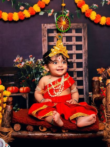 We love bringing cultural stories to life with our popular Krishna, Radha, and Shiva themed photoshoots. We also offer classic portraits of children in beautiful traditional Indian attire, complete with authentic props and backdrops that celebrate our rich heritage.
