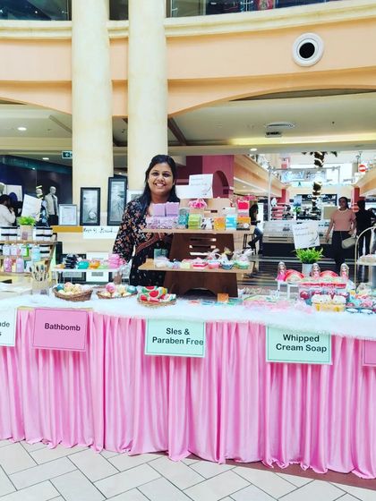 Come take a peek at where the magic happens. Here are some photos of me and my work at local exhibitions and markets. I love meeting my customers in person and sharing my passion for handmade, quality bath and body products.