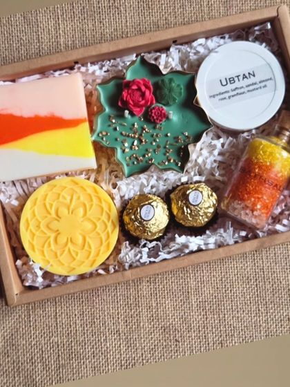 I design complete gifting solutions for any occasion, from birthdays and anniversaries to corporate events. These hampers combine my handmade soaps with other curated items like soy wax candles, body wash, bath salts, and even chocolates, all beautifully packaged and ready to delight.