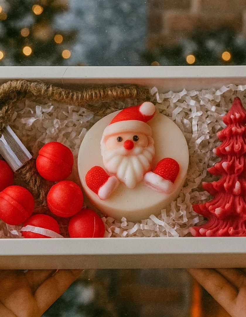 This is the first glimpse into the world of my handmade soaps. Each piece is a small work of art, crafted with skin-safe ingredients and a lot of love, perfect for gifting or a personal treat. This collection shows the variety and personalization I offer, from festive hampers to unique custom designs.