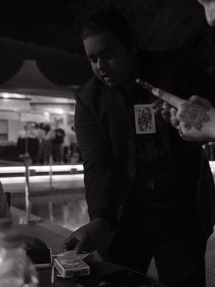 Naan Rajan. Magician, mentalist, hypnotist – all rolled into one. I've performed internationally and across India, with over 3000 shows under my belt. Awards are nice (I've got quite a few), but I care more about bringing real magic to your event. Nimge entertainment guarantee (Entertainment guaranteed for you).
