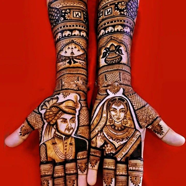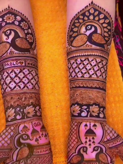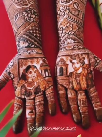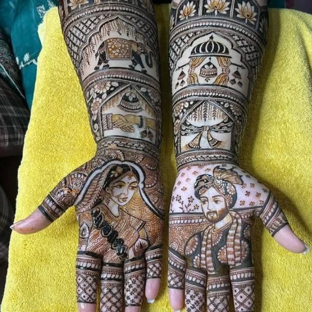 I specialize in creating personalized portrait mehandi that tells your love story. I can draw faces of the bride and groom, wedding scenes, or any special figures using my 100% natural henna paste.
